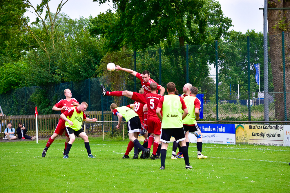 In den ersten Minuten hatten die Rotweißen deutlich mehr vom Spiel und gingen durch Hannes Piegel in der 7. Minute in Führung. Ein sehenswertes Solo schloss er zur vielumjubelten Führung. Ebenso schön war der Ausgleich der Gastgeber zehn Minuten später. Mit einem platzierten Schuss aus 25 Meter Torentfernung traf Thomas Dücker in den Nienborger Torwinkel – Torhüter Hendrik Wenning war hier machtlos. Danach kamen die Stadtlohner besser ins Spiel. Bis zum Spielende des sehr gut leitenden Schiedsrichters Christian Schmidt erspielten sich beide Teams mehrfach Einschussmöglichkeiten. Das Chancenplus lag bei den Stadtlohnern – die am Ende als Meister durchs Ziel gehen. Hierzu und zum Aufstieg in die Kreisliga C gratulieren wir dem Team und dem Verein ganz herzlich.