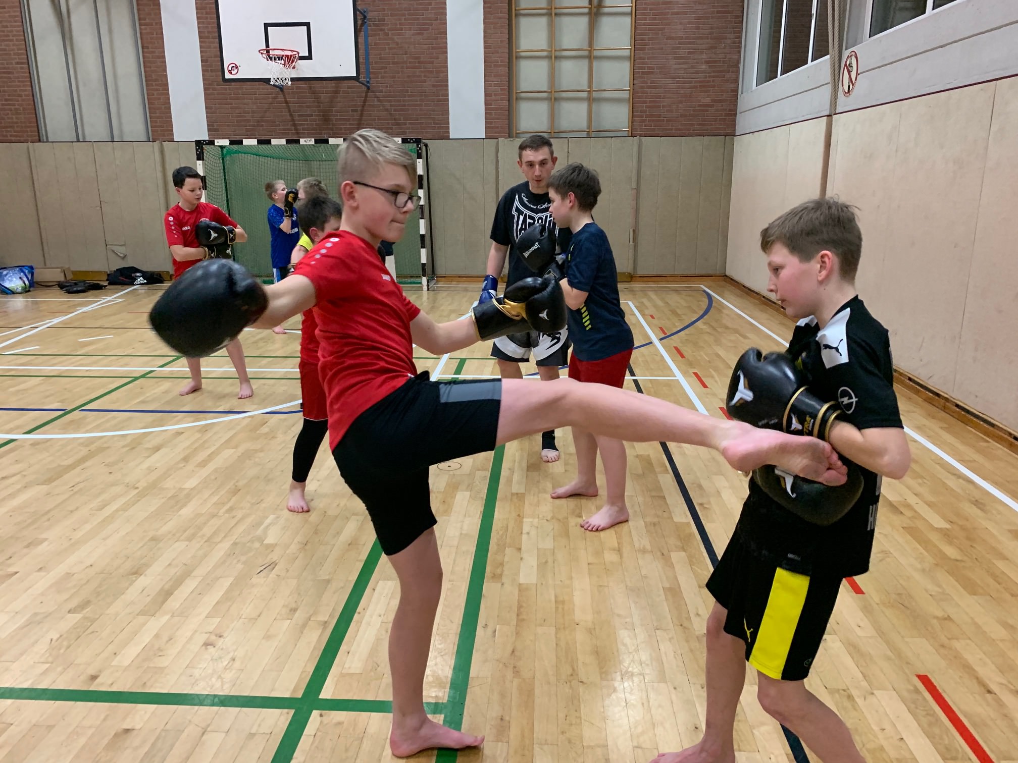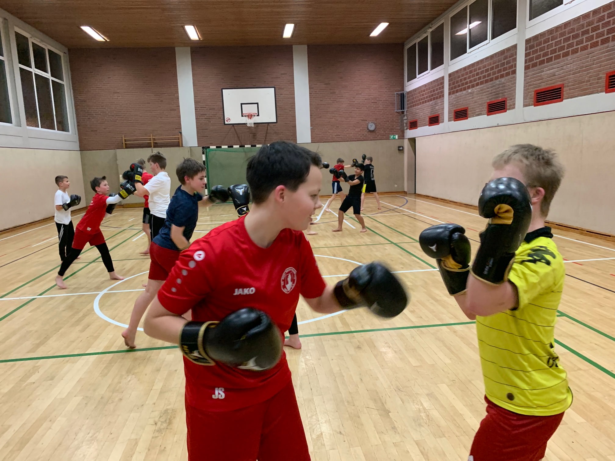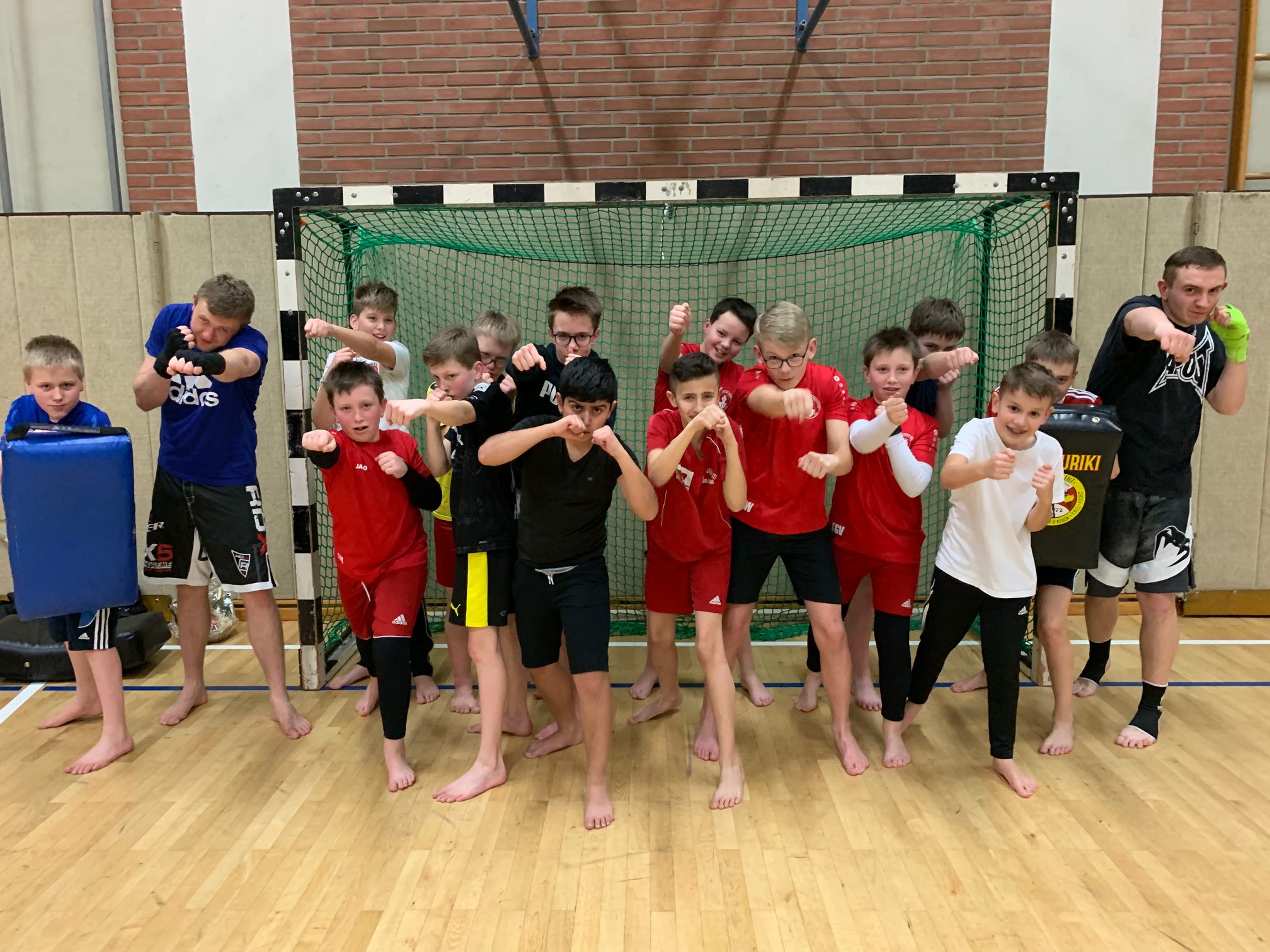 Am Freitag, 07.02.2020, stand für die D-Jugend Kicker von Frank, Felix und Jürgen eine außergewöhnliche Trainingseinheit auf dem Programm. Tobi vom ZaK war mit seinem Kumpel Dominik in die Sporthalle der Grundschule Nienborg gekommen, um den Jungs eine Einführung in die Welt des Kickboxens zu geben.