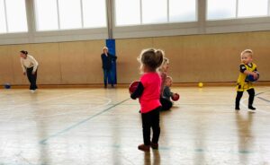 Früh übt sich! In Begleitung von Vater oder Mutter, aber auch anderen Bezugspersonen wie den Großeltern, werden so abwechslungsreiche Bewegungserfahrungen gesammelt. Die jüngsten und kleinsten RWN-Mitglieder im Alter von 1 – 3 Jahren entdecken mit Übungsleiterin Anna Baltus und ihren Erziehungsberechtigten spielerisch die Welt des Sports und das Abenteuer Sporthalle.
