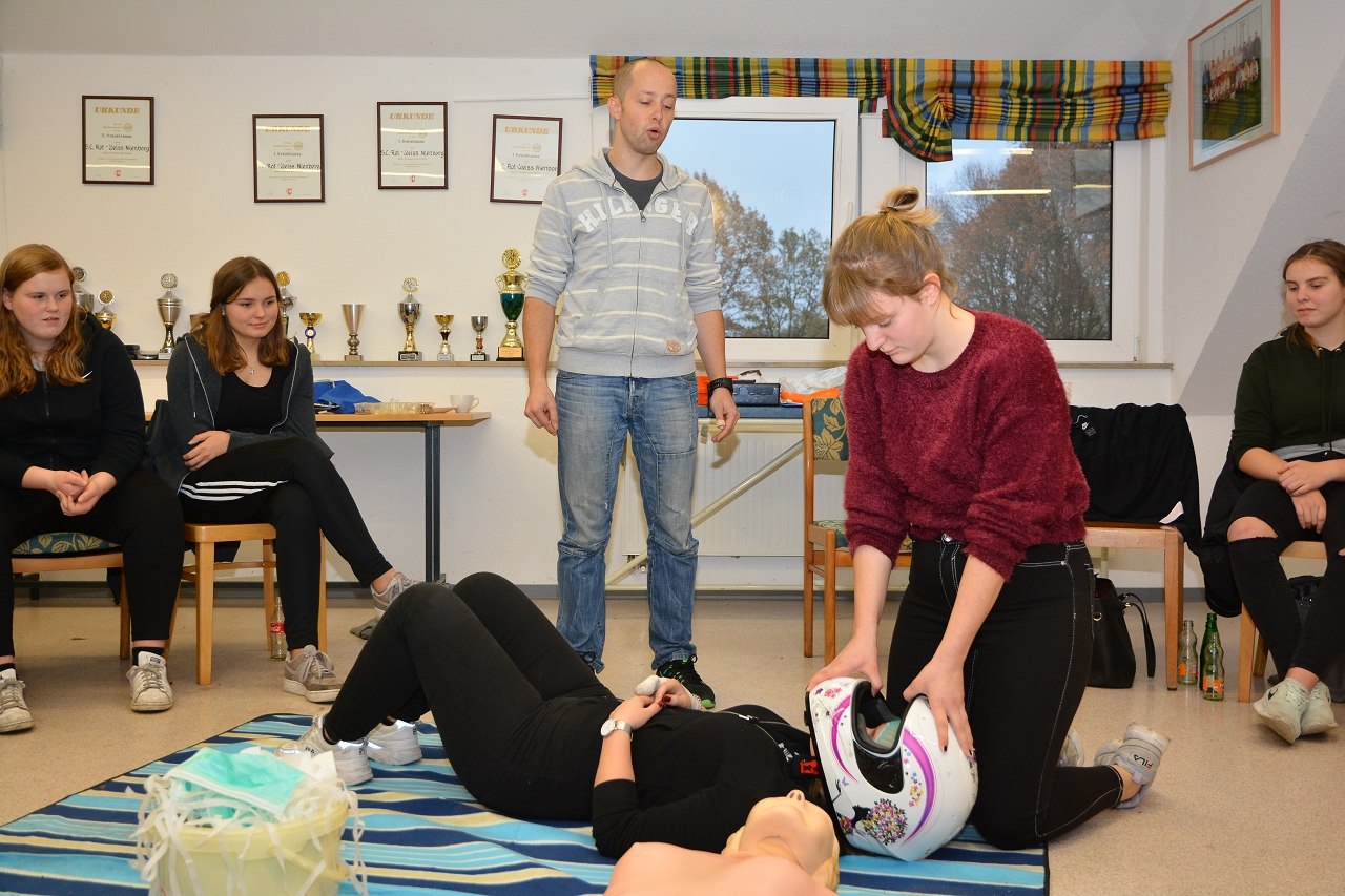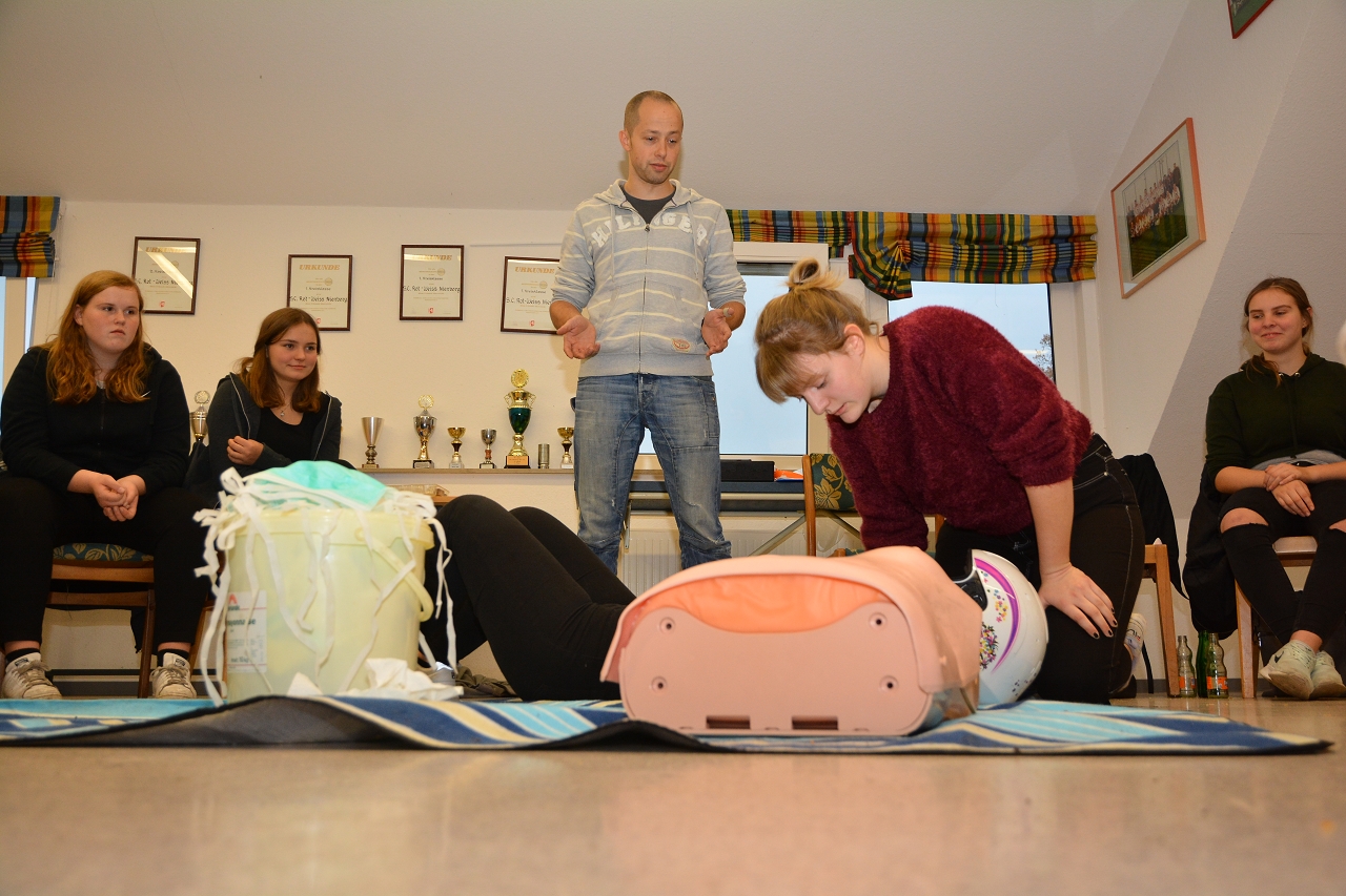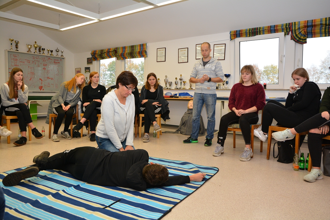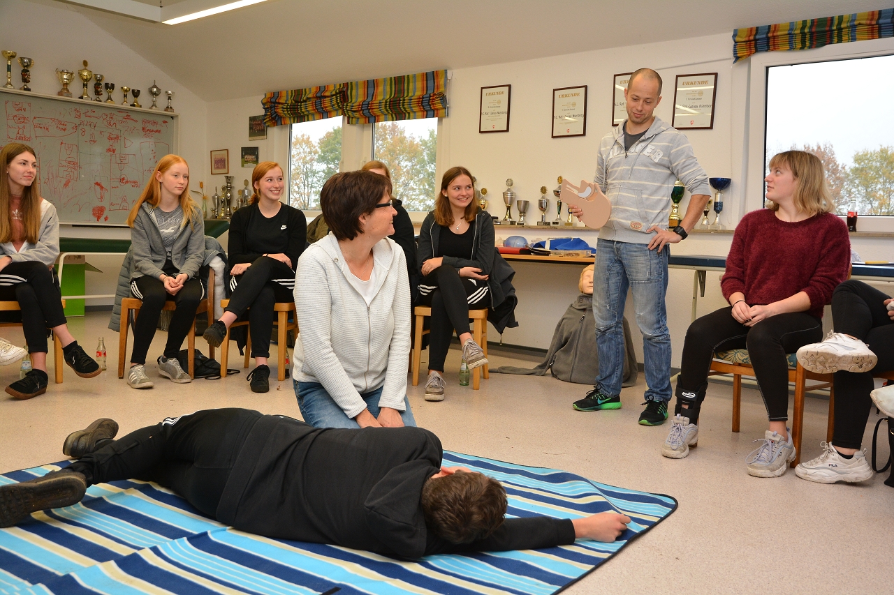 Eine ganztägige Erste-Hilfe-Schulung stand am Samstag (24. November 2018) beim SC Rot-Weiß Nienborg auf dem Programm. 21 Sportlerinnen und Sportler war der Einladung ins Eichenstadion gefolgt und erlebten mit Thomas Ciolek vom „Team Robert Lange aus Münster“ einen kurzweiligen Workshop. Themen und Anwendungen waren unter anderem die Wundversorgung, Druckverbände, stabile Seitenlage, Helfen bei Unfällen, Mund-zu-Mund-Beatmung, Verbrennungen, Hitze- und Kälteschäden sowie Unfälle mit Helmträgern und vieles andere mehr. Neben einem theoretischen Teil stand sehr viel Praxis auf dem Programm. Die Teilnehmer erhielten Handlungssicherheit in Erster Hilfe für Notfälle in Freizeit und Beruf. Jugendobmann Josef Schröder hatte die Organisation übernommen.