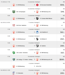 Unsere D-Jugend revanchierte sich gegen den SC Südlohn für die Niederlage im Hinspiel und behielt mit 2:0 die Oberhand. Nach dem Sieg kletterte das Team auf dem 4. Tabellenplatz! Auch die C-Jugend blieb nach dem unglücklichen Remis am Donnerstag nun siegreich. Bei der JSG Lünten/Ammeloe siegte RWN knapp mit 2:1 Toren. Mittelfeldspieler Len Ammertmann sorgte mit seinem ersten Saisontreffer kurz vor Schluss für den umkämpften Sieg.