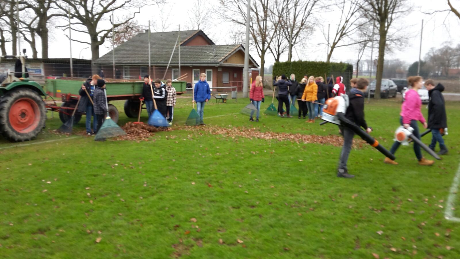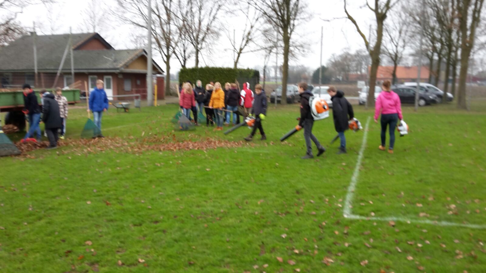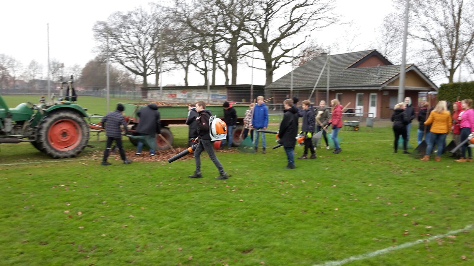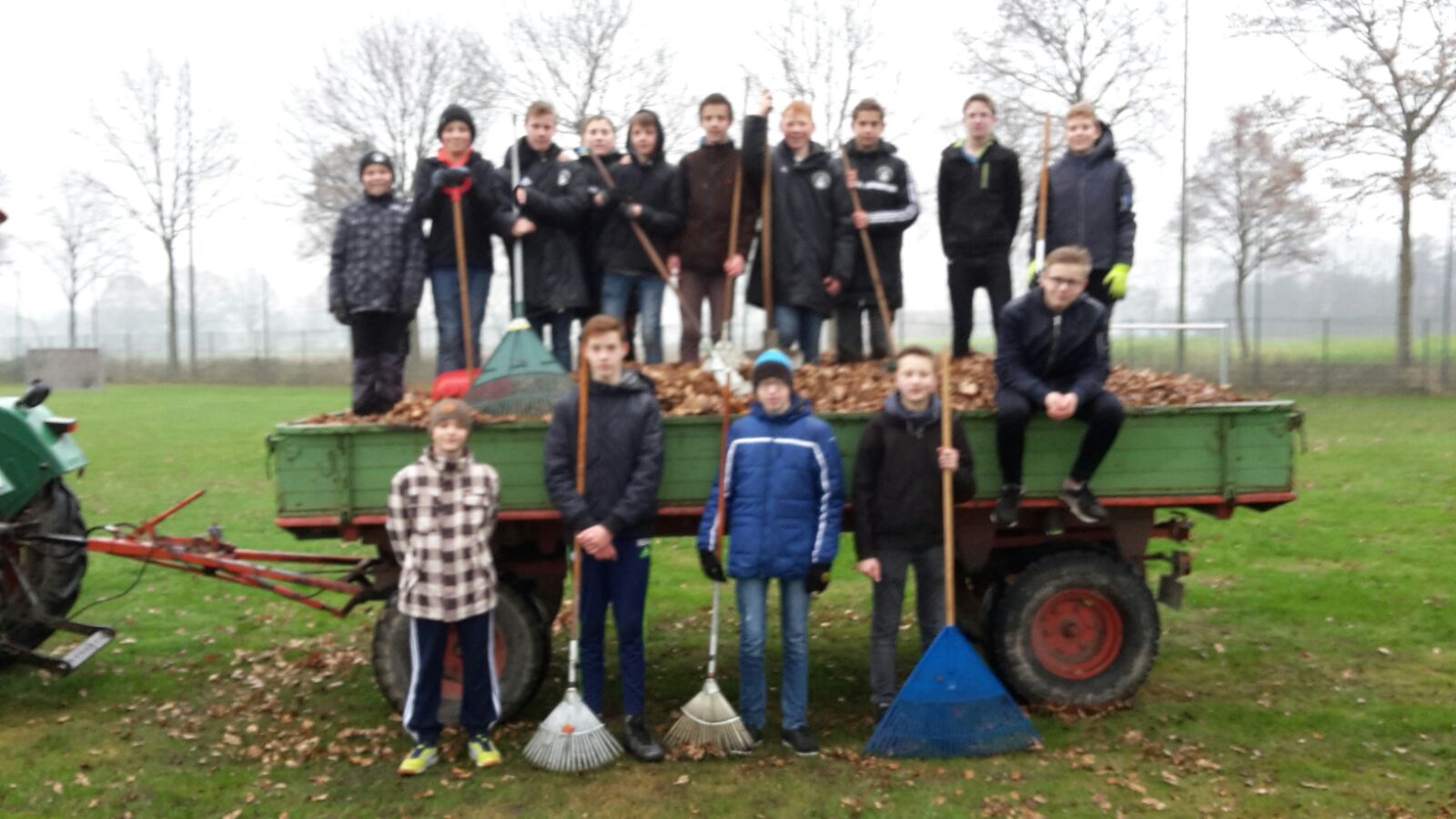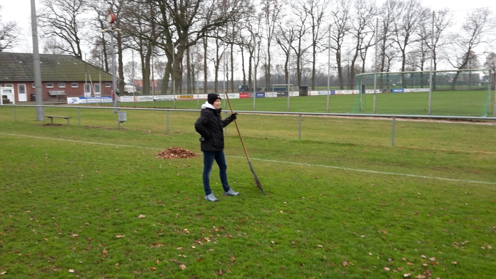 Auch am dritten Adventssamstag waren fleißige Helferinnen und Helfer im Eichenstadion bei der Laubaktion aktiv. An diesem Samstag befreiten die C-Juniorinnen, die C-Jugend und die Damenmannschaft die Sportstätte vom Eichenlaub.
