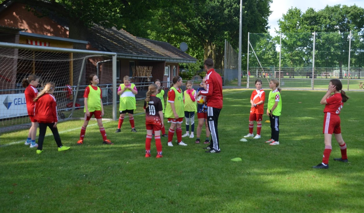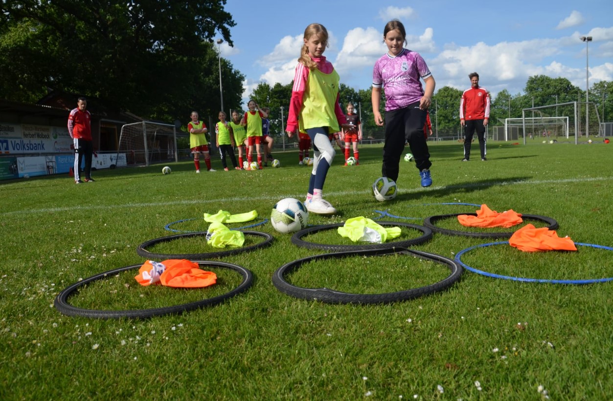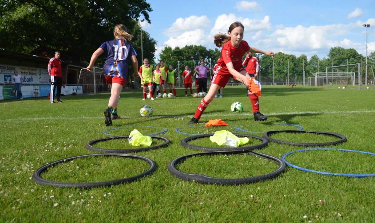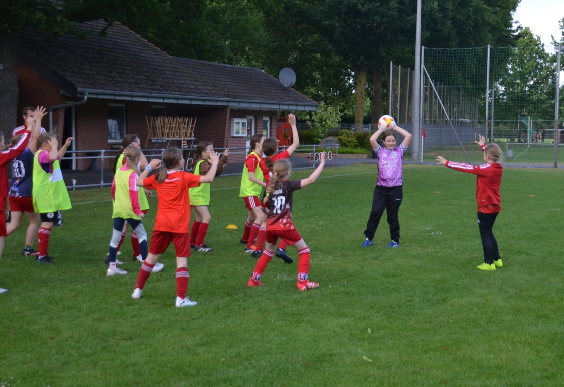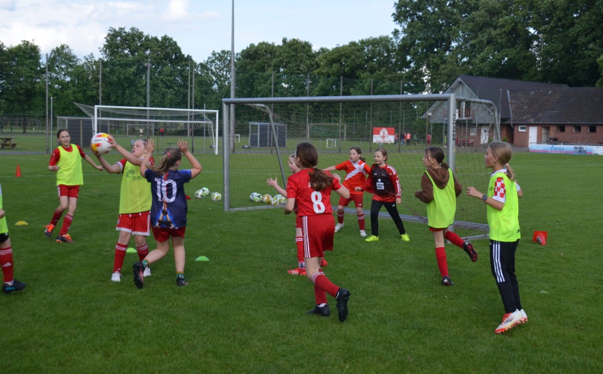 Im Rahmen eines Schnuppertrainings für Mädchen im Alter von 9 bis 10 Jahren durften die E-Mädchen des RW Nienborg am Montag, den 26.05.2025 auf dem Hauptplatz trainieren – ein besonderes Highlight für die jungen Fußballerinnen. Mit großer Freude und viel Engagement absolvierten die Mädchen verschiedene Übungen und kleine Spiele und erhielten so einen spannenden Einblick in den Vereinsfußball.