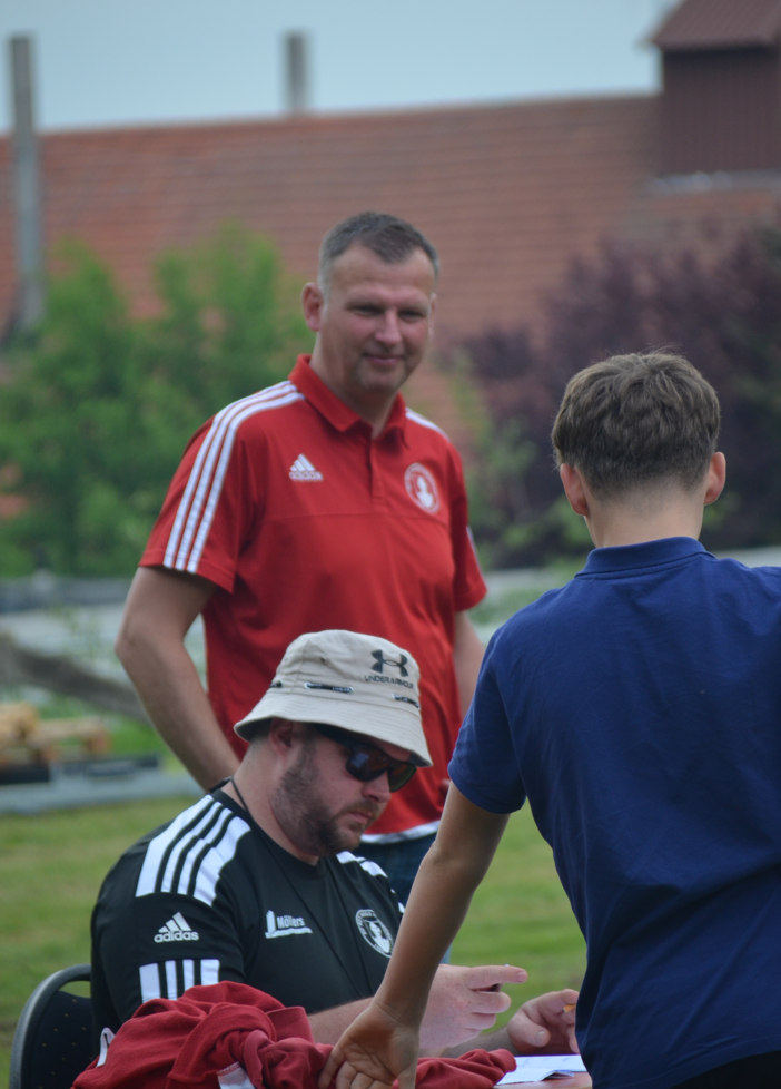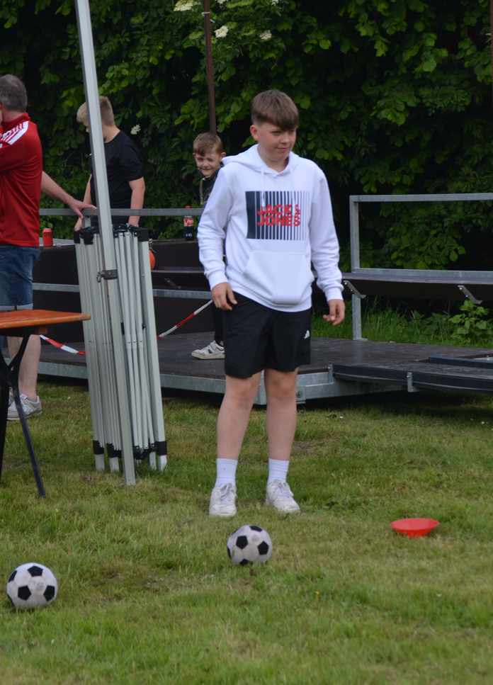 Nach einer kurzen Nacht wurde sich am Samstag morgen erstmal mit einem sehr reichhaltigen Frühstück gestärkt. Die Mannschaften für die Olympiade wurden vorgestellt und dann ging es auch schon los. Die einzelnen Teams mussten verschiedenen Prüfungen (Sackhüpfen, Torwandschießen, Kegeln, Dart-Fußball, Fußballkegeln, Ball hochalten, Puzzel, Hau den Lukas, Dart) absolvieren und zudem noch Quizfragen rund um unseren Verein und unserem schönen Ort Nienborg beantworten. Für die Olympiade hatten die Teams zwei Tage (Samstag + Sonntag) Zeit. Nach dem Mittagessen wurde es im Zelt rund um die Fernsehübertragung der Spiele der 3. und 1. Bundesliga laut. So sorgten der Aufstieg von Preußen Münster in die 2. Bundesliga und die Ergebnisse der 1. Bundesliga für ordentliche Stimmung unter den Anwesenden. Gegen Abend folgte dann ein Highlight des Pfingstlagers. Ab 19 Uhr kämpften eine Vielzahl von Anwärter/innen um die neue Königswürde beim Lager-Schützenfest. Am Ende konnte sich Lutz Schwietering zum neuen Regenten krönen. Zur Königin erkor er seine Schwester Maike. Mit einem tollen Spalier wurde der Thron dann unter der Leitung von Hauptmann Thorsten Lammers bejubelt.