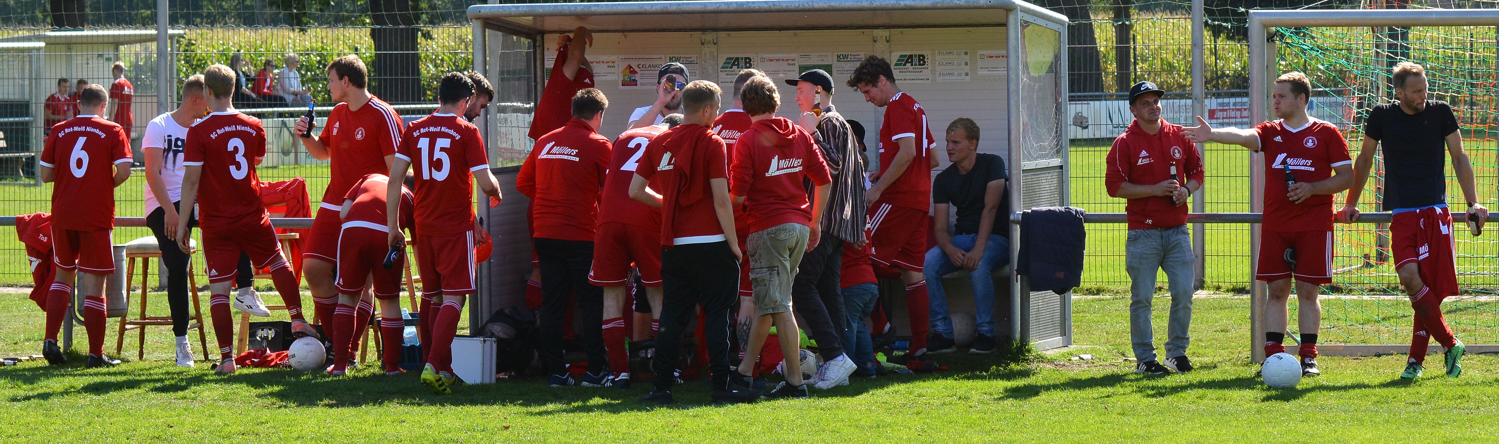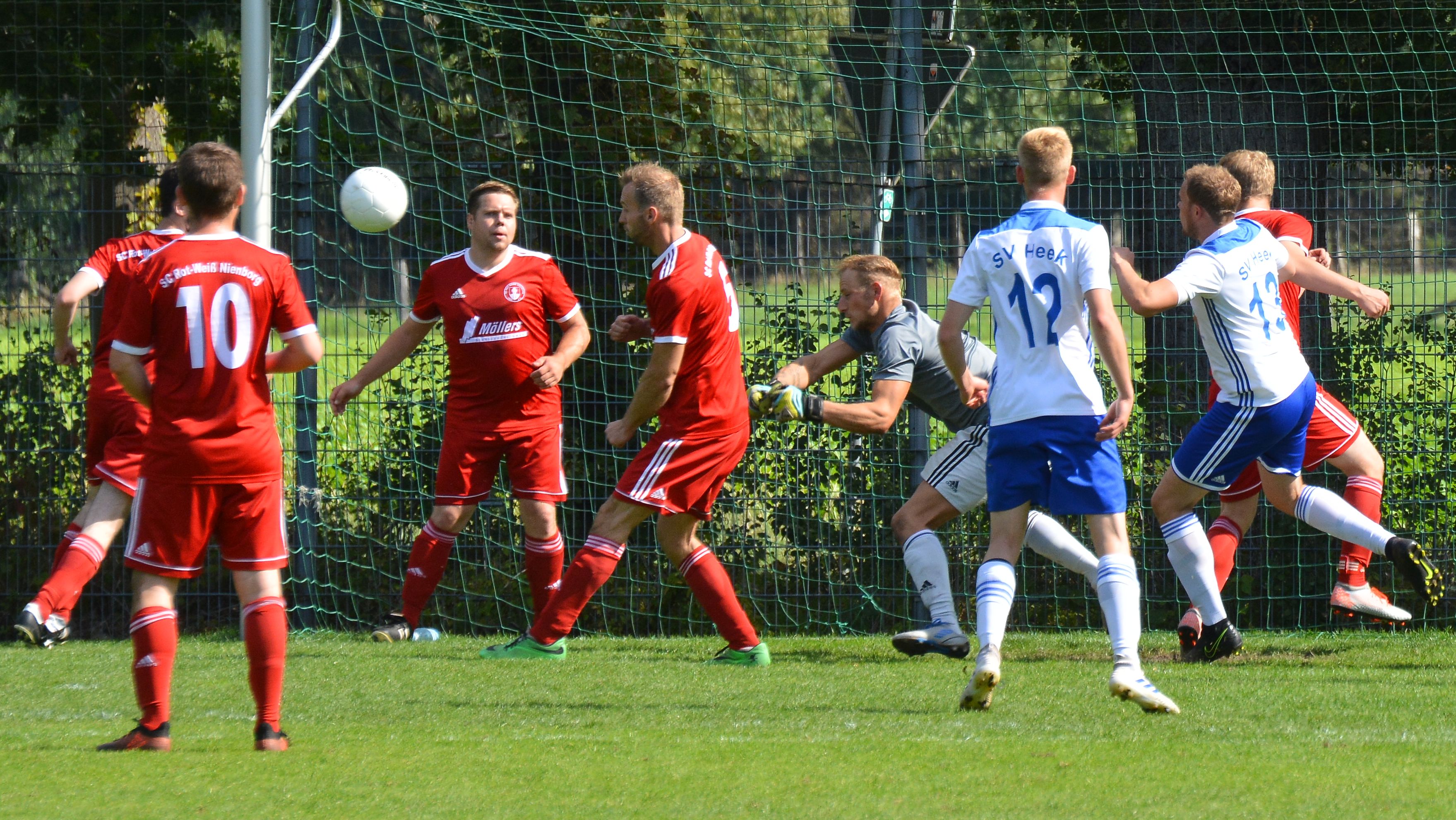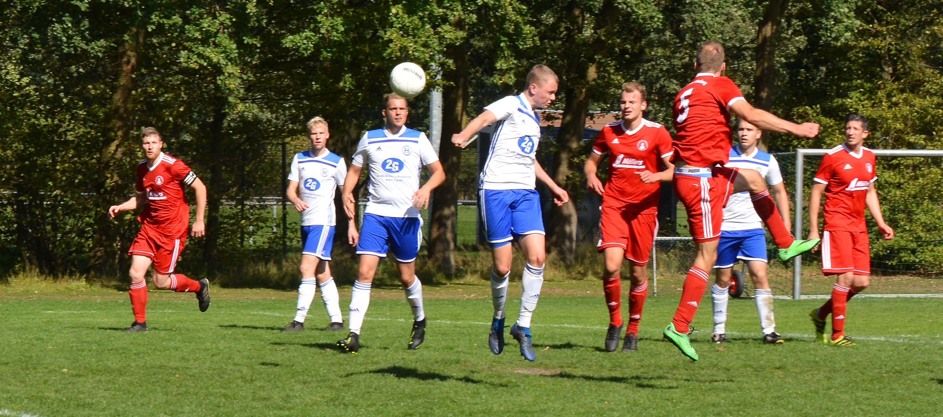 „Spannung pur“ hieß es am Sonntag (15.09.2019) beim Spiel der 2. Mannschaft des SC Rot-Weiß Nienborg im Ortsderby gegen die zweite Mannschaft vom SV Heek. Zahlreiche Zuschauer aus beiden Fanlagern hatten sich auf den Weg ins Eichenstadion gemacht. Die Gäste aus Heek gingen als Favorit in dieses Spiel. Die Führung erzielten allerdings die Rotweißen durch Christian Mers in der 26. Minute. Kurz vor dem Pausenpfiff glich Lukas Wigger aus. Nach dem Seitenwechsel gab es auf beiden Seiten gute Einschussmöglichkeiten. Bis zur letzten Spielminute hofften beide Teams auf einen Sieg. Weitere Tore fielen jedoch nicht. Am Ende blieb es beim verdienten 1:1.