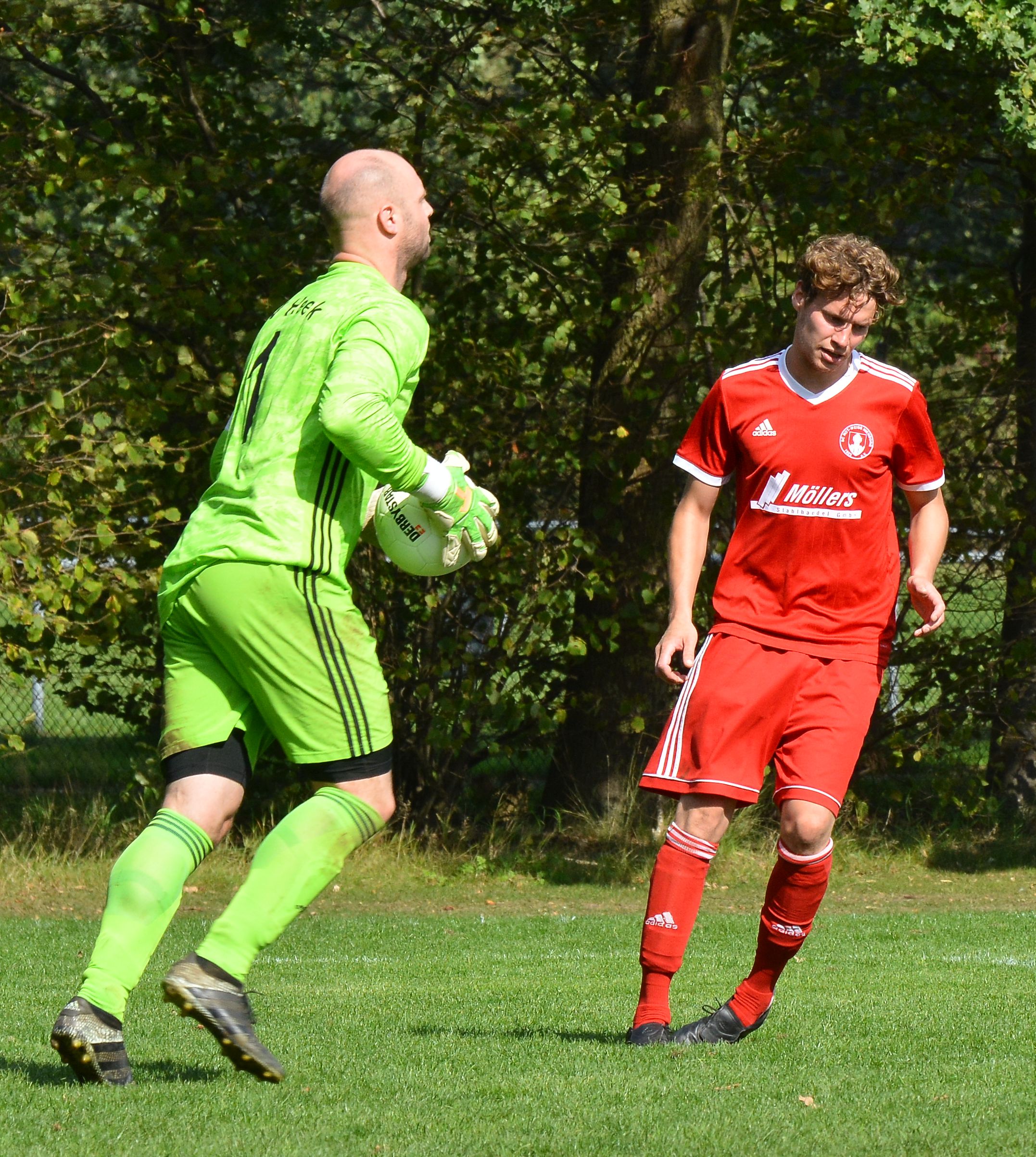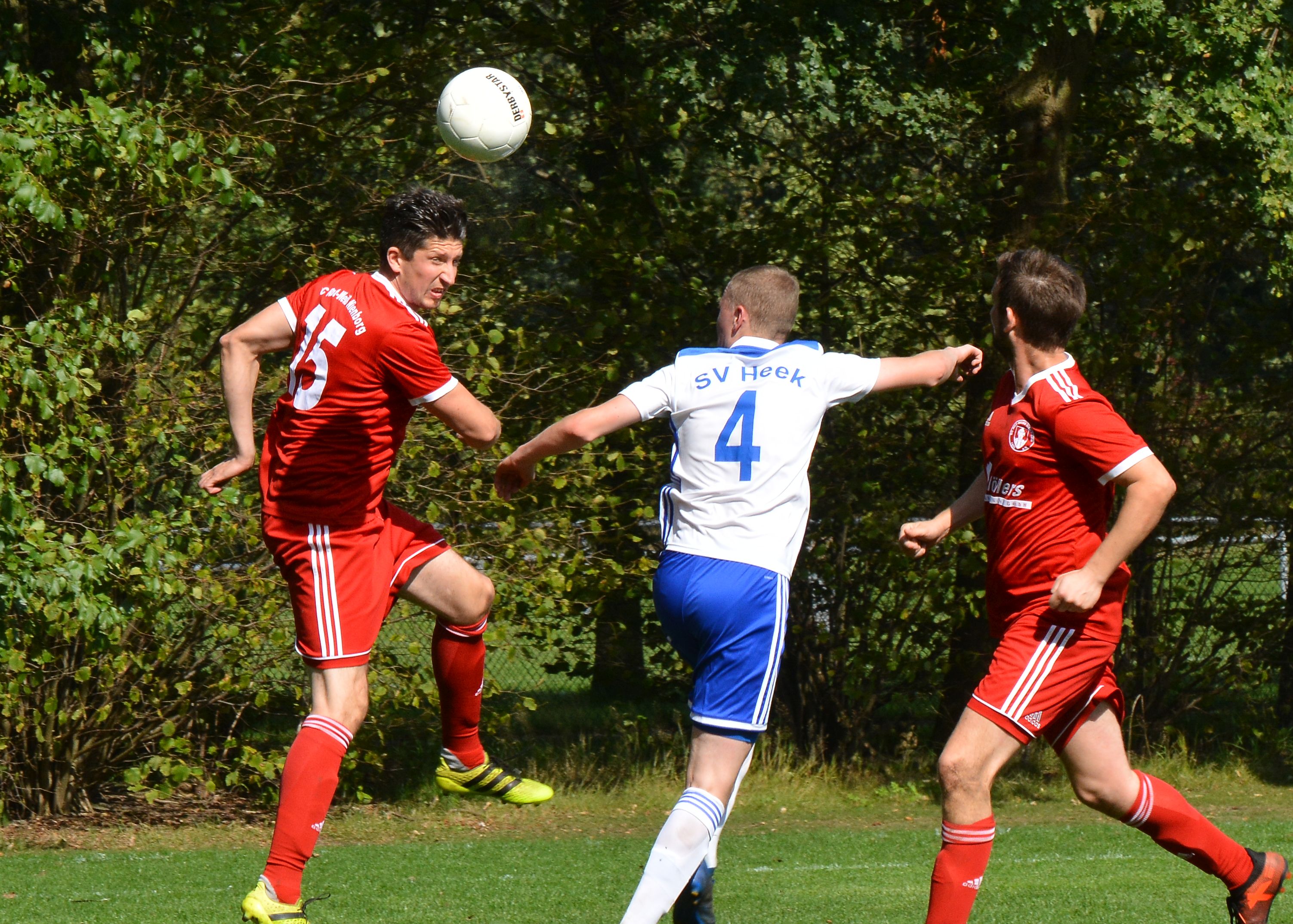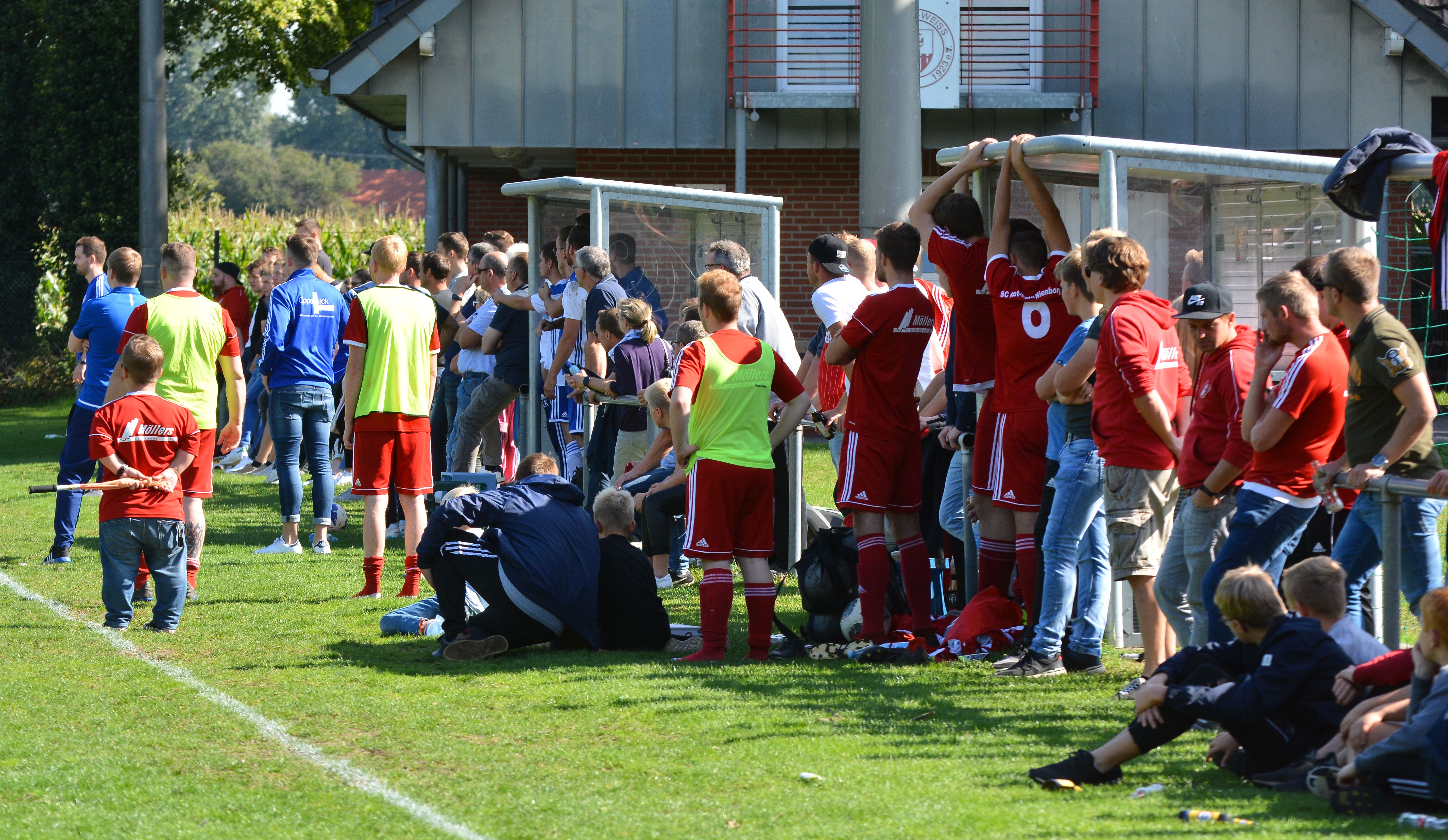 „Spannung pur“ hieß es am Sonntag (15.09.2019) beim Spiel der 2. Mannschaft des SC Rot-Weiß Nienborg im Ortsderby gegen die zweite Mannschaft vom SV Heek. Zahlreiche Zuschauer aus beiden Fanlagern hatten sich auf den Weg ins Eichenstadion gemacht. Die Gäste aus Heek gingen als Favorit in dieses Spiel. Die Führung erzielten allerdings die Rotweißen durch Christian Mers in der 26. Minute. Kurz vor dem Pausenpfiff glich Lukas Wigger aus. Nach dem Seitenwechsel gab es auf beiden Seiten gute Einschussmöglichkeiten. Bis zur letzten Spielminute hofften beide Teams auf einen Sieg. Weitere Tore fielen jedoch nicht. Am Ende blieb es beim verdienten 1:1.